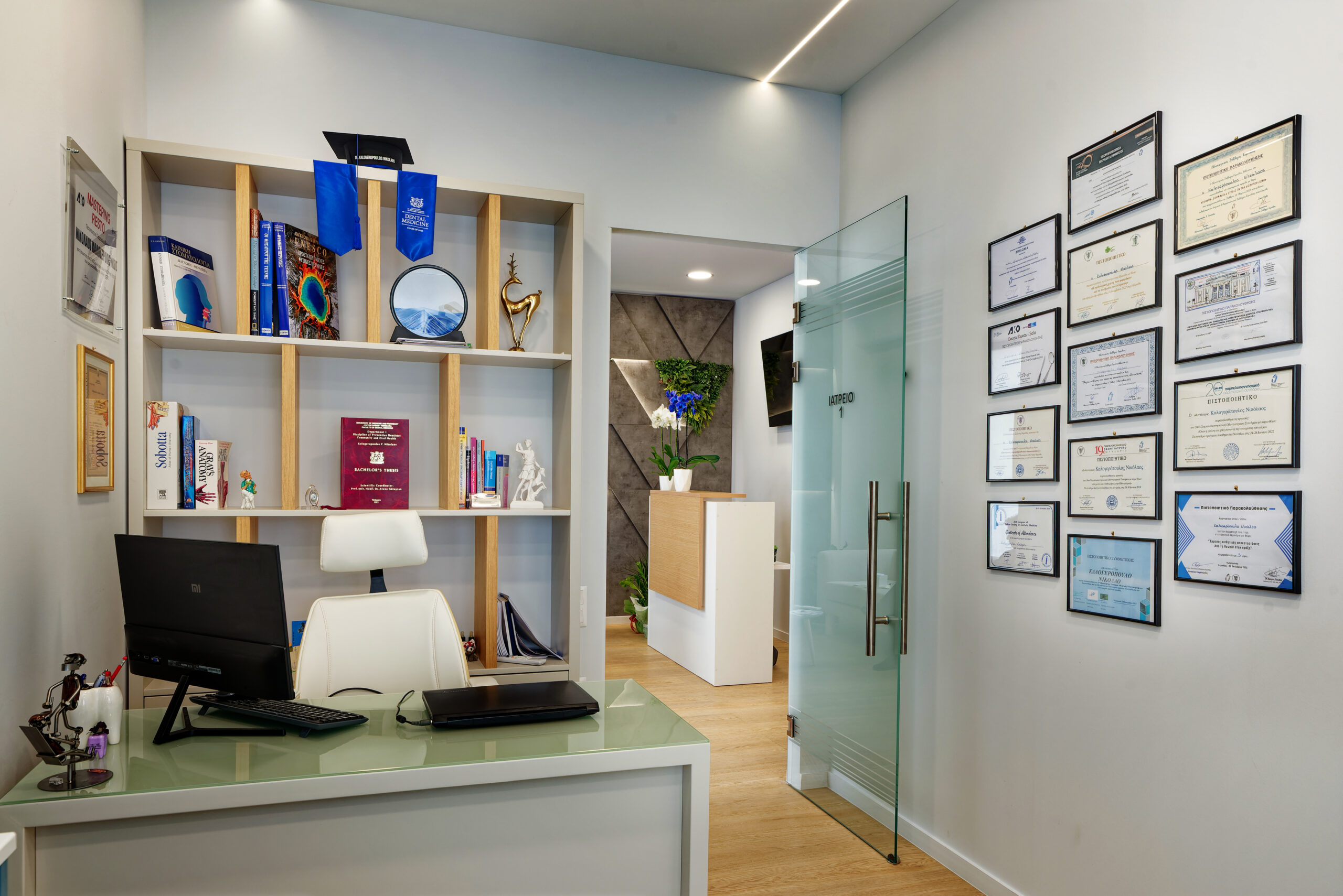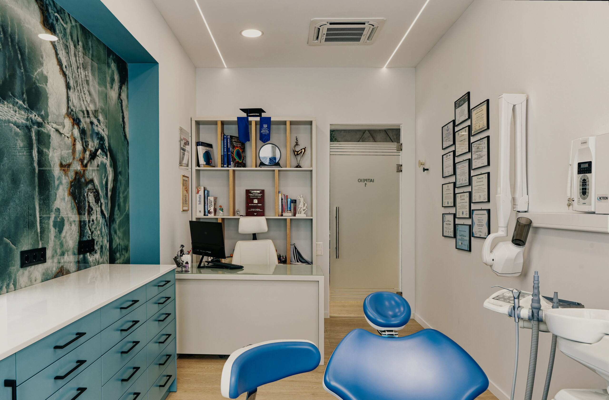 Στην κλινική μας διαθέτουμε 3 πλήρως εξοπλισμένα οδοντιατρεία, σχεδιασμένα με βάση τις ευρωπαϊκές προδιαγραφές για την παροχή υψηλού επιπέδου υπηρεσιών υγείας. Οι χώροι έχουν σχεδιαστεί με έμφαση στη λειτουργικότητα και την αισθητική, προσφέροντας ένα σύγχρονο, αισθητικά άρτιο, φιλικό και φιλόξενο περιβάλλον για τους ασθενείς μας.